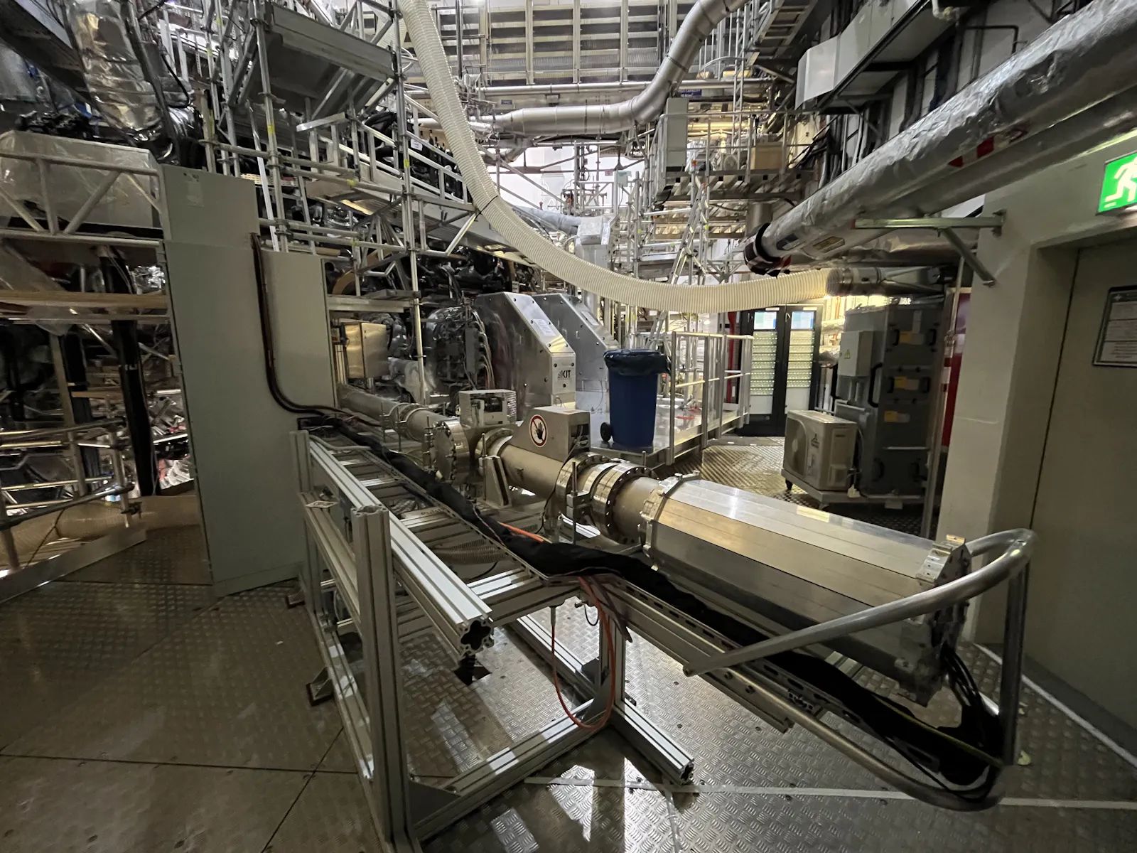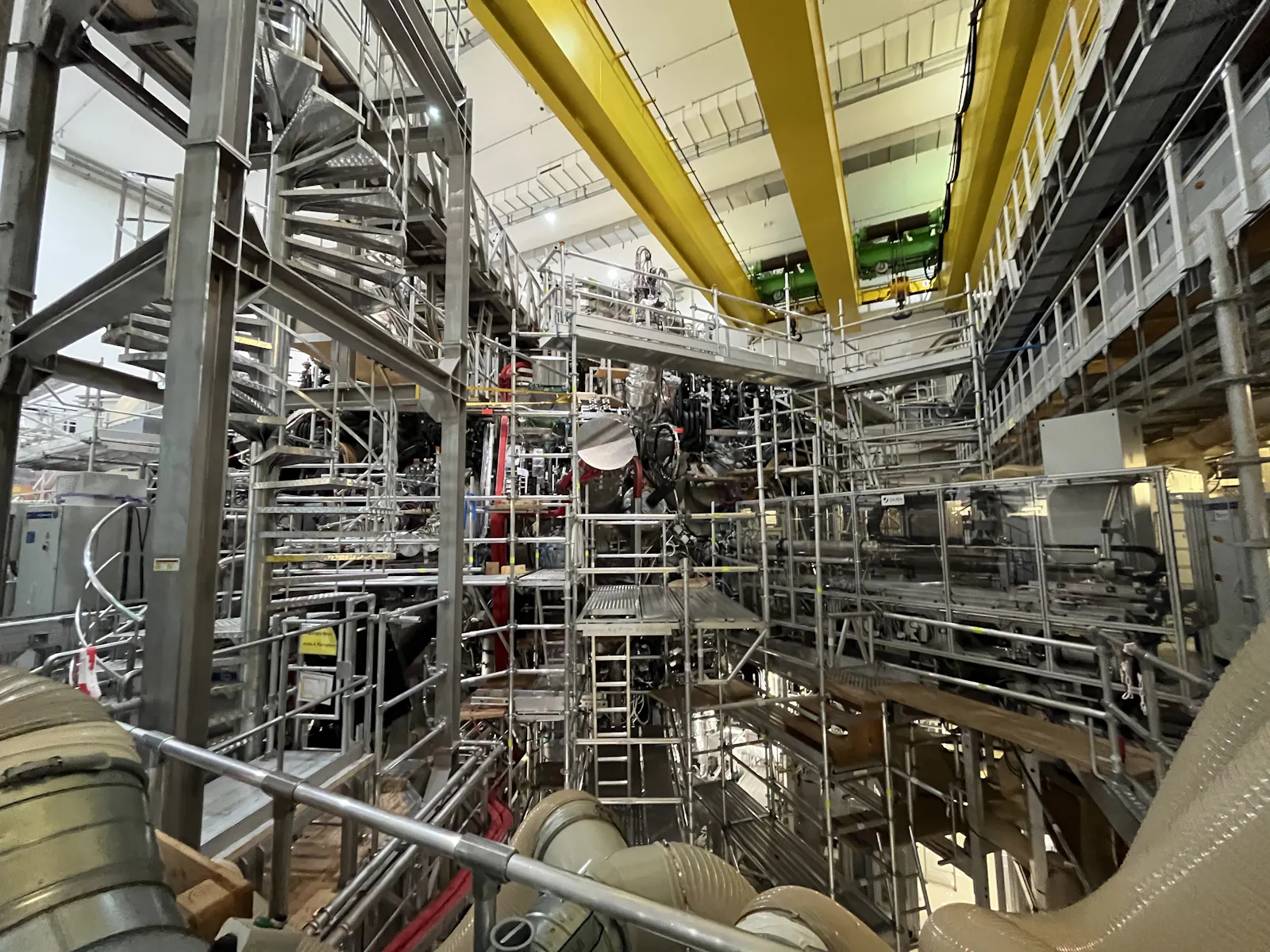 In der Halle des Stellarators wird möglichst wenig Eisen verbaut, um die Magnetfelder nicht zu beeinflussen, deswegen sind alle Laufgänge aus Alu.